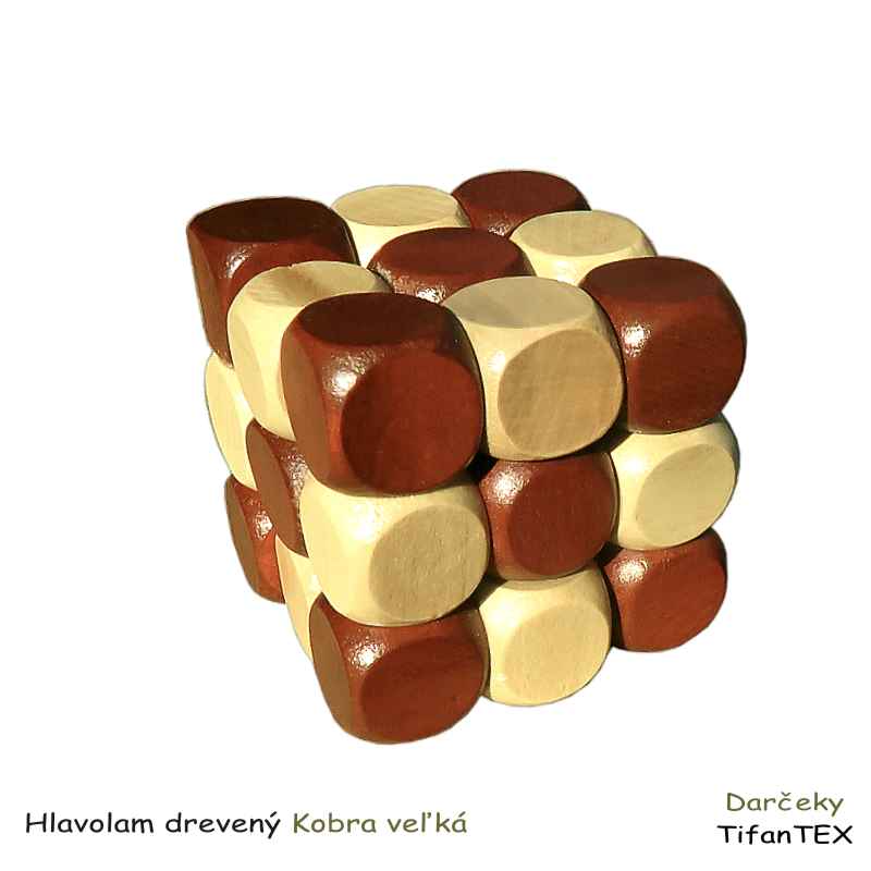 špecifikácia: dvojfarebný drevený hlavolam Kobra veľká je zábava pre malých i veľkých
