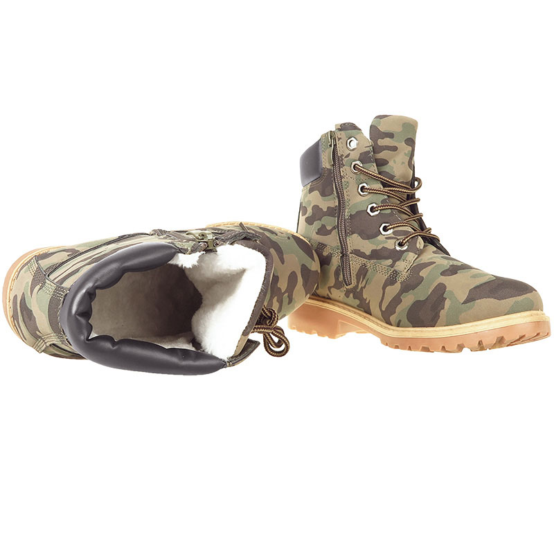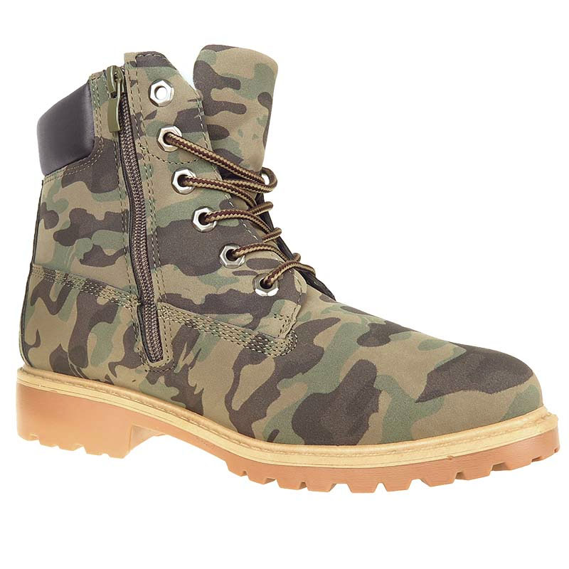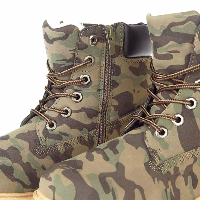 V týchto dámskych maskáčových topánkach outdoor sa bude každá dáma cítiť komfortne ako aj štýlovo počas každej vonkajšej aktivity či udalosti. Topánky disponujú prvkami ako napríklad zateplenou podšívkou či hrubou podrážkou, ktoré z nich vytvárajú obuv vhodnú najmä do chladného, zasneženého prostredia. Vnútorné zateplenie topánok je vyrobené zo syntetickej teplej podšívky, čiže aj za veľmi chladného počasia bude stále prítomné príjemné teplo v obuvi. Obuv sa viaže klasicky šnúrkami, ale pre kvalitnejšie spevnenie obuvi do náročnejšieho terénu je v topánkach zakomponovaný aj zips na vnútornej strane obuvi. Po vizuálnej stránke je táto dámska obuv vyrobená v maskáčovom army prevedení, čo vytvára z týchto dámskych topánok modernú obuv súcu na rôzne zimné športy a aktivity, ktoré si jednoducho zamilujete už pri prvom vyskúšaní.