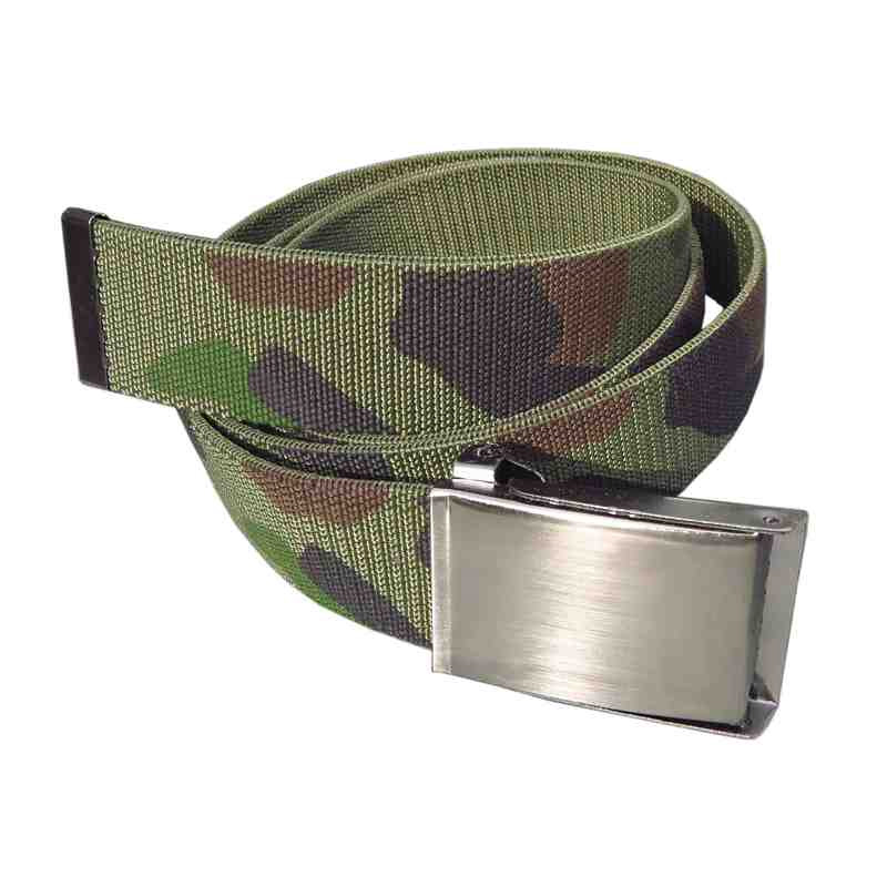 špecifikácia: elastický maskáčový opasok s kovovou prackou, vhodný na bežné nosenie