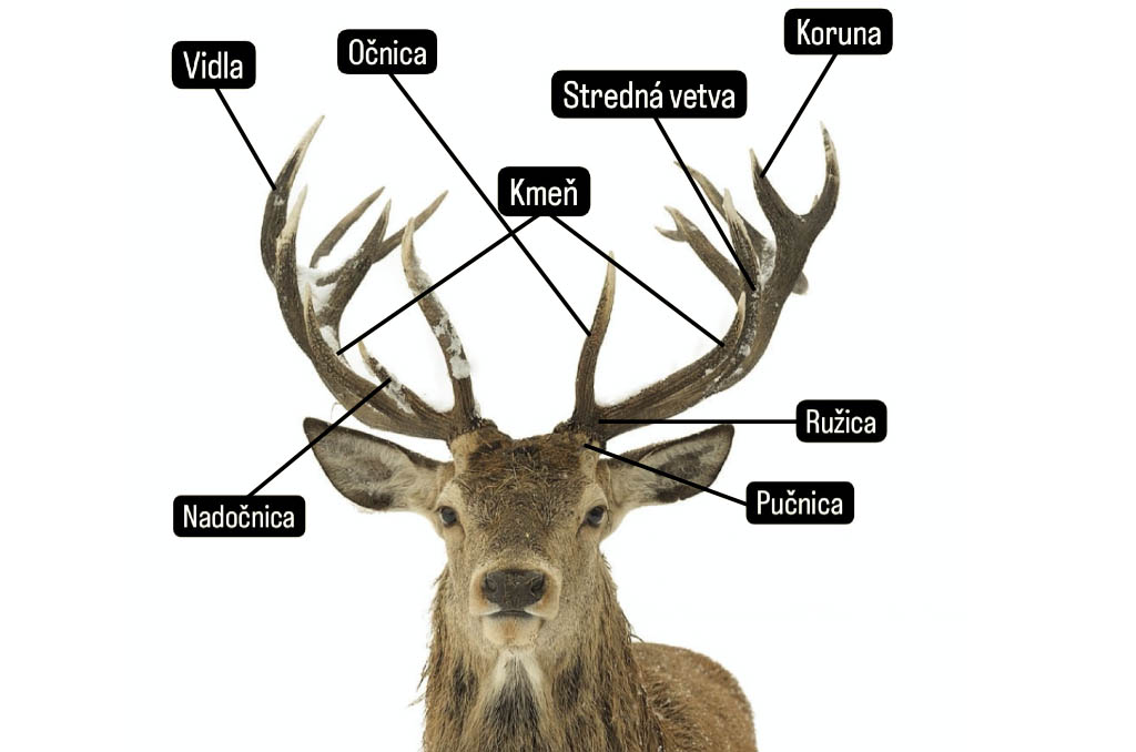 Ďalšou zaujímavosťou je, že parožie sa skladá z viacerých častí, s rôznymi názvami.