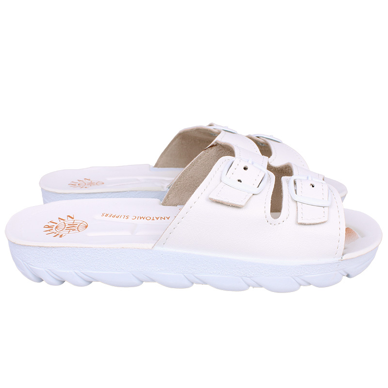 Dámske zdravotné šľapky vyrobené z pohodlných a kvalitných materiálov. Šľapky sú v estetických bledých farbách a obsahujú ergonomicky tvarovanú a jemnú stielku. Podrážka je pružná a protišmyková vyrobená zo vstrekovaného PU. Dámske zdravotné papuče Mjartan obsahujú 2 nastaviteľné remienky pre lepšie prispôsobenie sa nohe s nízkym aj vysokým nártom. Taktiež udržia vaše nohy v bezpečí a pohodlí po celý deň. Tieto dámske zdravotné šľapky sú ideálne na domáce nosenie, alebo ako prezúvky do práce, do kancelárie, nemocnice a pod. Sú ľahké, praktické a vyvinuté pre celodenné nosenie.