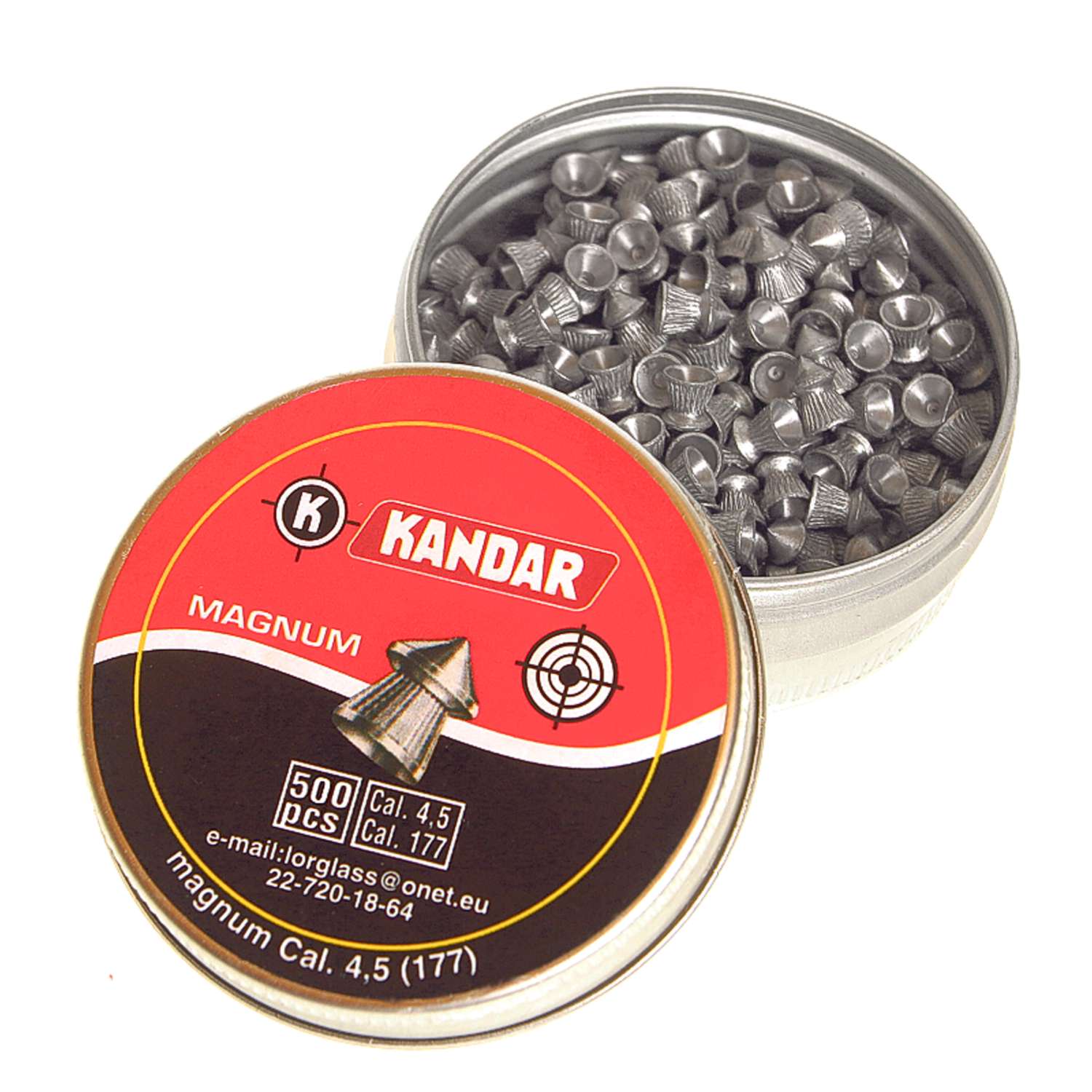 Klasické strelivo do vzduchoviek diabolky kaliber 4,5 mm v balení 500 ks. Značka Kandar. Strelivo so špičkou, vďaka čomu je streľba presnejšia.