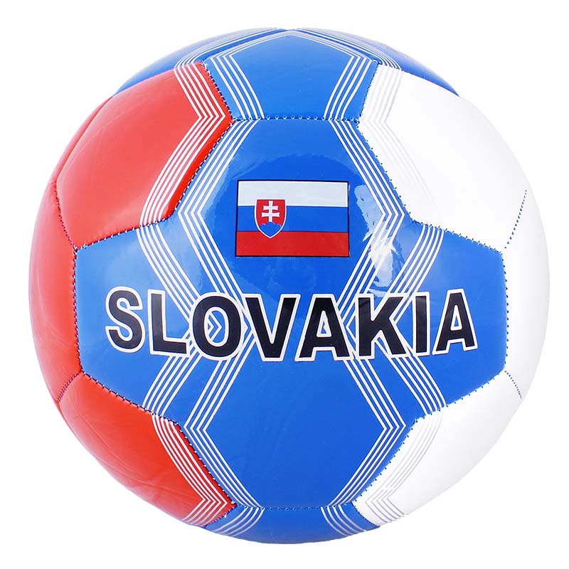 Futbalová lopta v slovenských farbách so slovenskou vlajkou na lopte. Lopta je nafukovacia a po nafúknutí má veľkosť 5.