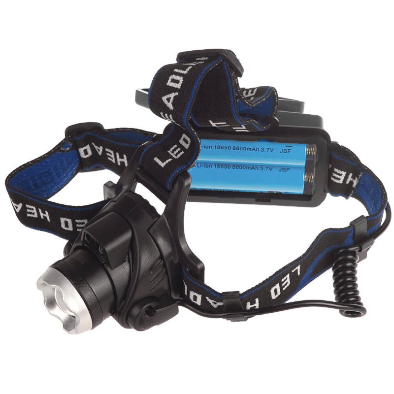 Balenie obsahuje: čelovku, 2x batériu 3,7V 18650 nabíjačku do siete na 220V a adaptér na batérie 3xAAA