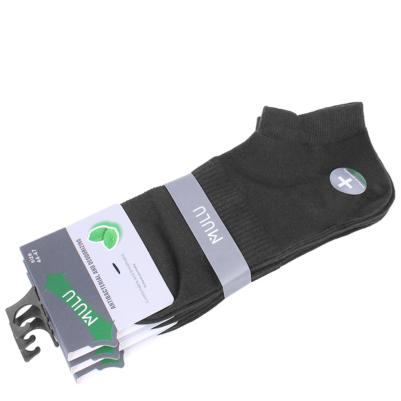 Klasické balenie troch párov členkových pánskych ponožiek v čiernej farbe. Tieto kvalitné pánske členkové ponožky sú doplnené o antibakteriálne vlastnosti ako aj o príjemnú sviežu vôňu. Vďaka tomu pohlcujú zápach, skvele odvádzajú vlhkosť a sú príjemné na nosenie aj po celý deň.