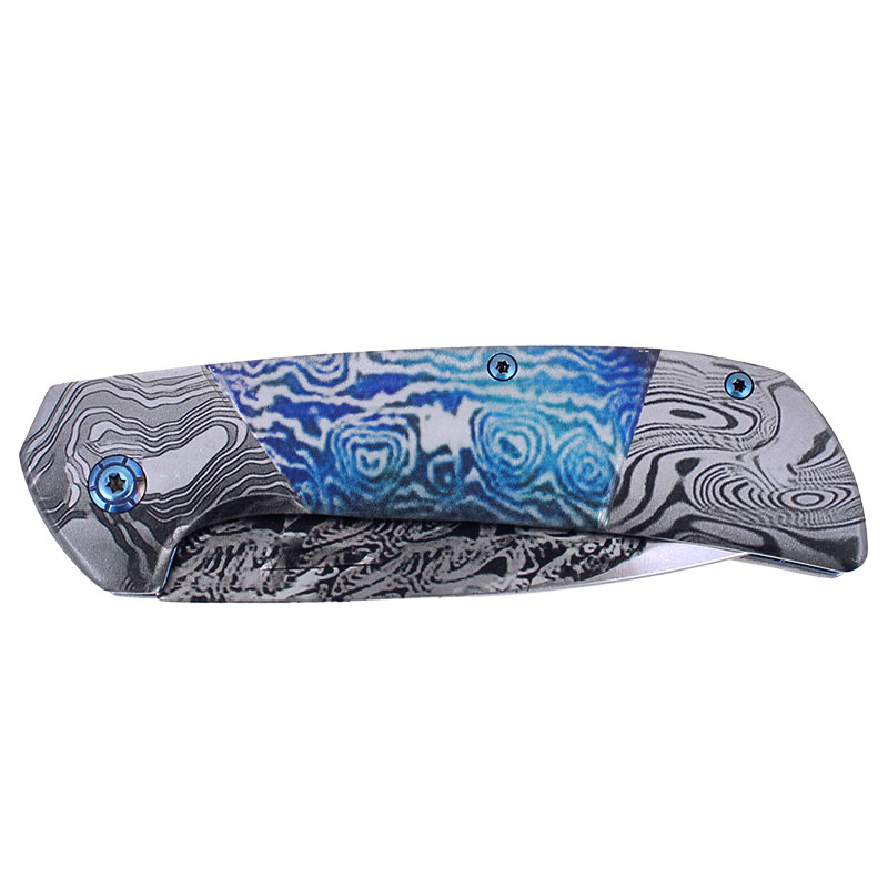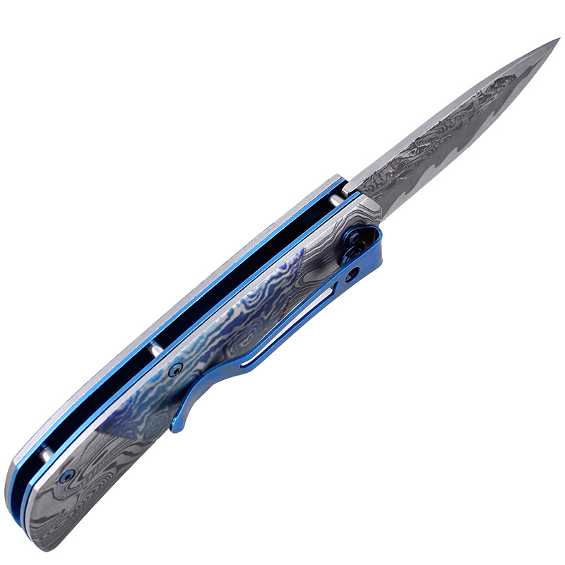 Albainox nôž Damask blue je skladací nôž navrhnutý ako elegantný a zároveň kvalitný vreckový nožík. Čepeľ má klasický profil s plochým brúsením, čo zaisťuje predvídateľné rezné vlastnosti a dobrú kontrolu pri každodenných úlohách. Oceľ 3Cr13Mov ponúka praktickú odolnosť proti korózii a jednoduché ostrenie, vďaka čomu je tento model vhodný pre základné EDC aplikácie. Dekoratívna damašková úprava dodáva čepeli výrazný, vrstvený vzor, ktorý zdôrazňuje jej zberateľský charakter.