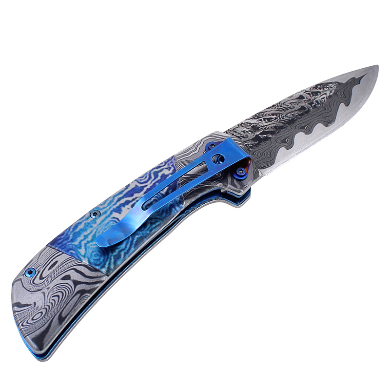 Oceľová rukoväť s 3D štruktúrou je navrhnutá ako pevná, masívna pracovná platforma. Liner lock stabilizuje čepeľ v otvorenej polohe a zaisťuje intuitívne ovládanie. Integrovaný klip umožňuje pohodlné nosenie vo vrecku. Albainox Blue Steel 3D Damask Design je skladací nôž, ktorý kombinuje dekoratívny štýl s klasickým, osvedčeným dizajnom skladacieho noža.