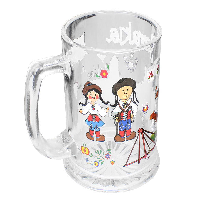 Sklenený pohár s uškom so slovenským motívom ideálny ako pohár na pivo ale aj na iné nápoje. Objem pohára je 400ml a bol vyrobený zo skla. Uško pohára je možné chytiť so štyrmi prstami. Ide o ideálny slovenský suvenír alebo aj praktickú dekoráciu do domácnosti
