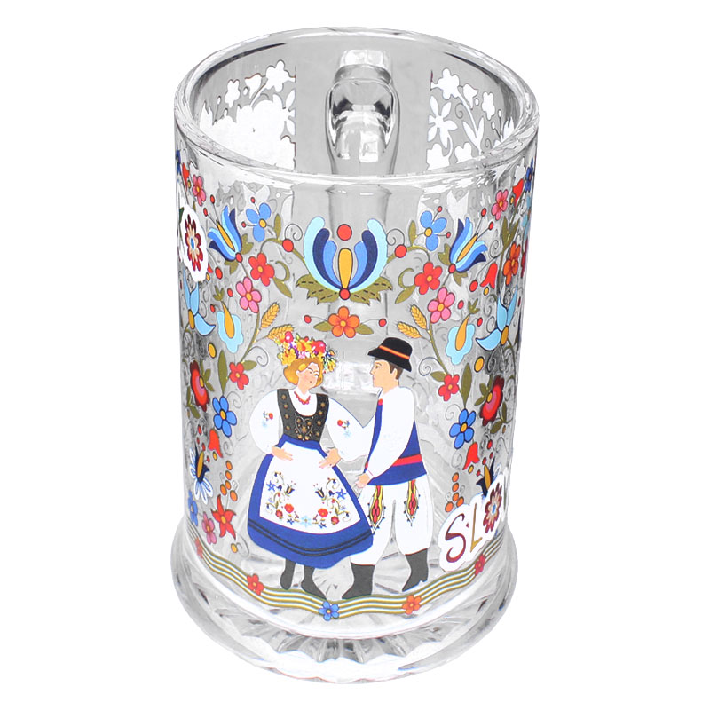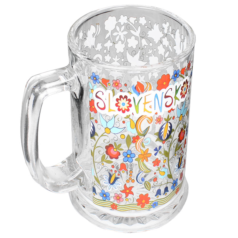 Sklenený pohár s uškom so slovenským motívom ideálny ako pohár na pivo ale aj na iné nápoje. Objem pohára je 400ml a bol vyrobený zo skla. Uško pohára je možné chytiť so štyrmi prstami. Ide o ideálny slovenský suvenír alebo aj praktickú dekoráciu do domácnosti