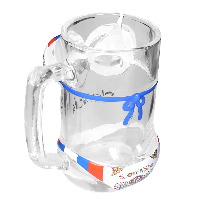 Sklenený pohár s uškom so slovenským motívom ideálny ako pohár na pivo ale aj na iné nápoje. Objem pohára je 300ml a bol vyrobený zo skla. "Prednosti" na pohári vyčnievajú z povrchu pohára, vďaka čomu majú poriadny 3D tvar. Uško pohára je možné chytiť so štyrmi prstami.
