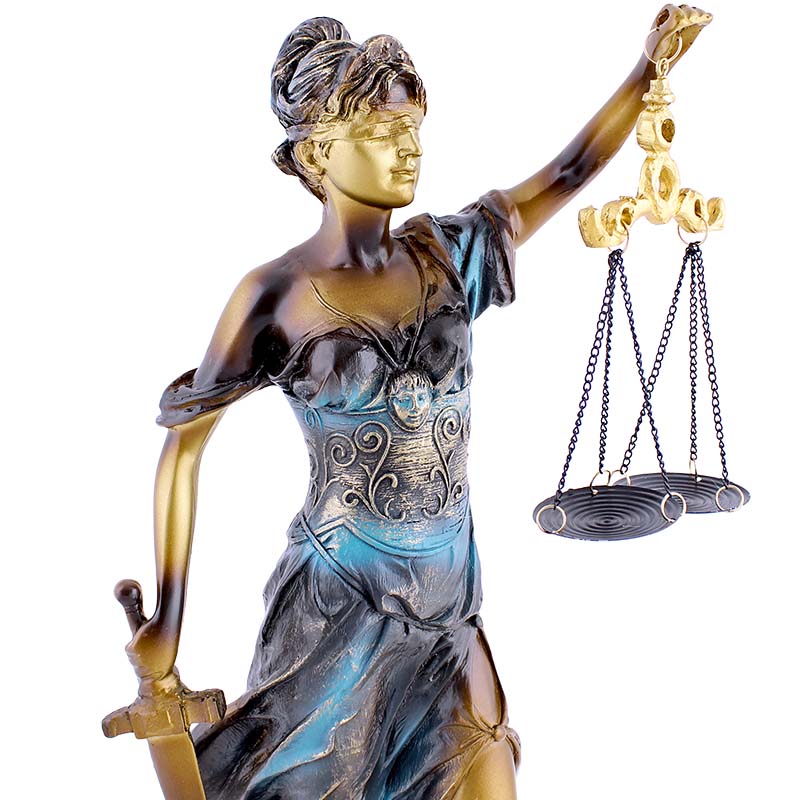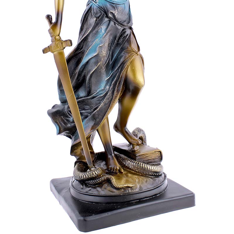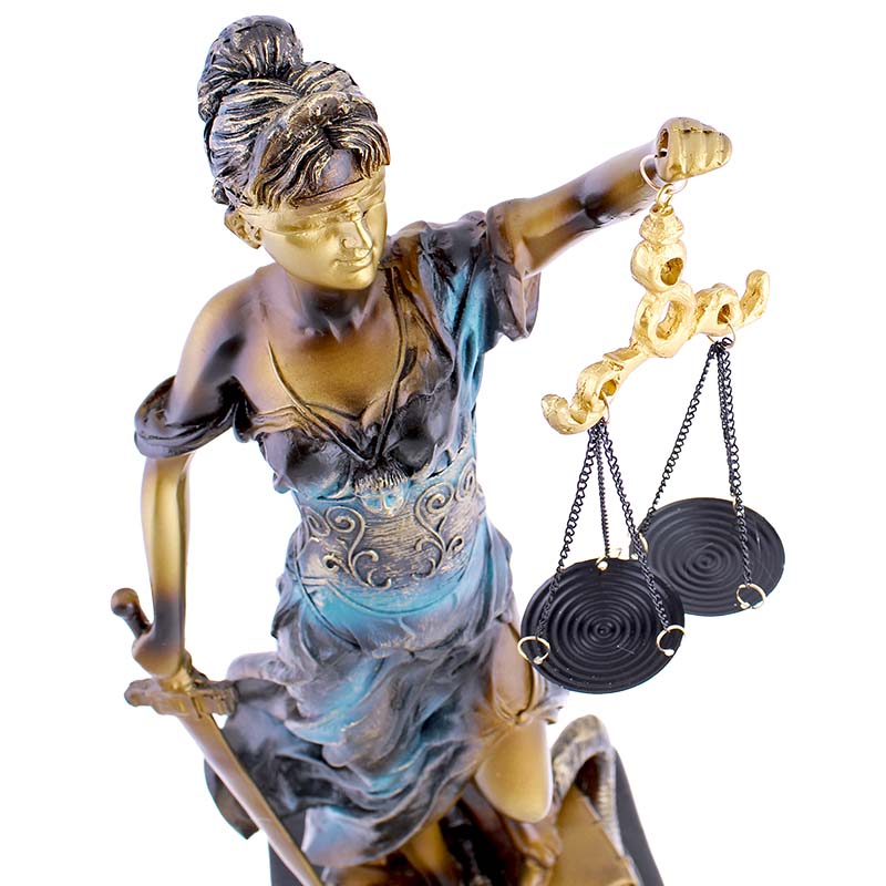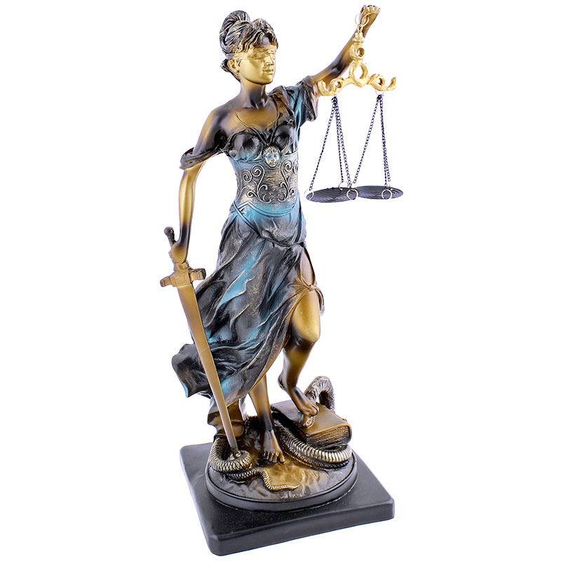 Socha spravodlivosti Justícia je nezvyčajná, no za to elegantná dekorácia do každej izby či kancelárie. Soška je vysoká 41 cm a bola vyrobená z polyresinu. Polyresin je tvorený umelou živicou a kameňom. Táto soška predstavuje starorímsku bohyňu Justitiu, ktorá drží v jednej ruke váhy spravodlivosti a v druhej ruke meč. Soška je veľmi detailná so zaviazanými očami. Váha sošky je cca 1,2 kg. Jedná sa tak o originálnu dekoráciu do izby vďaka detailom, prevedeniu ale hlavne myšlienke, ktorú presadzuje.