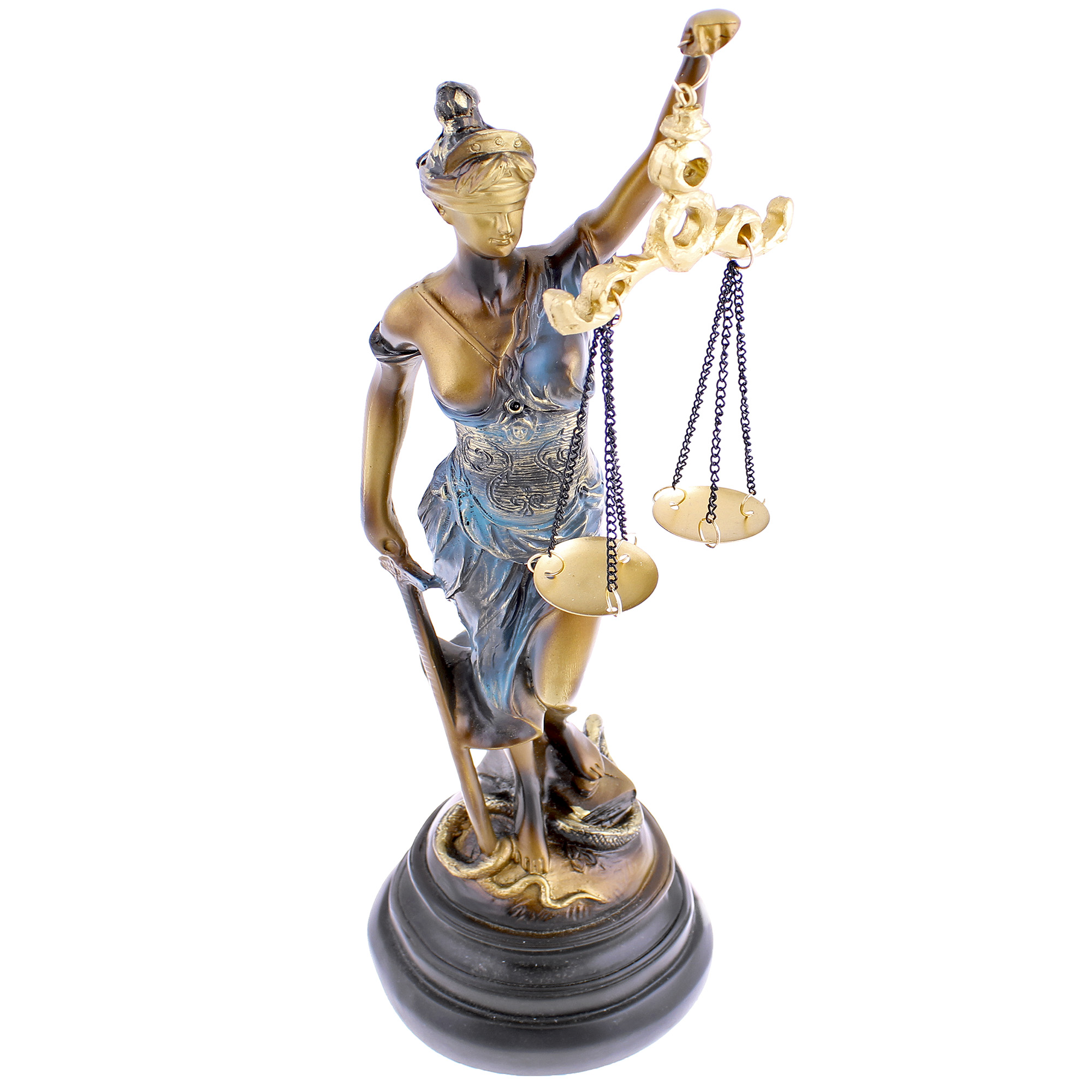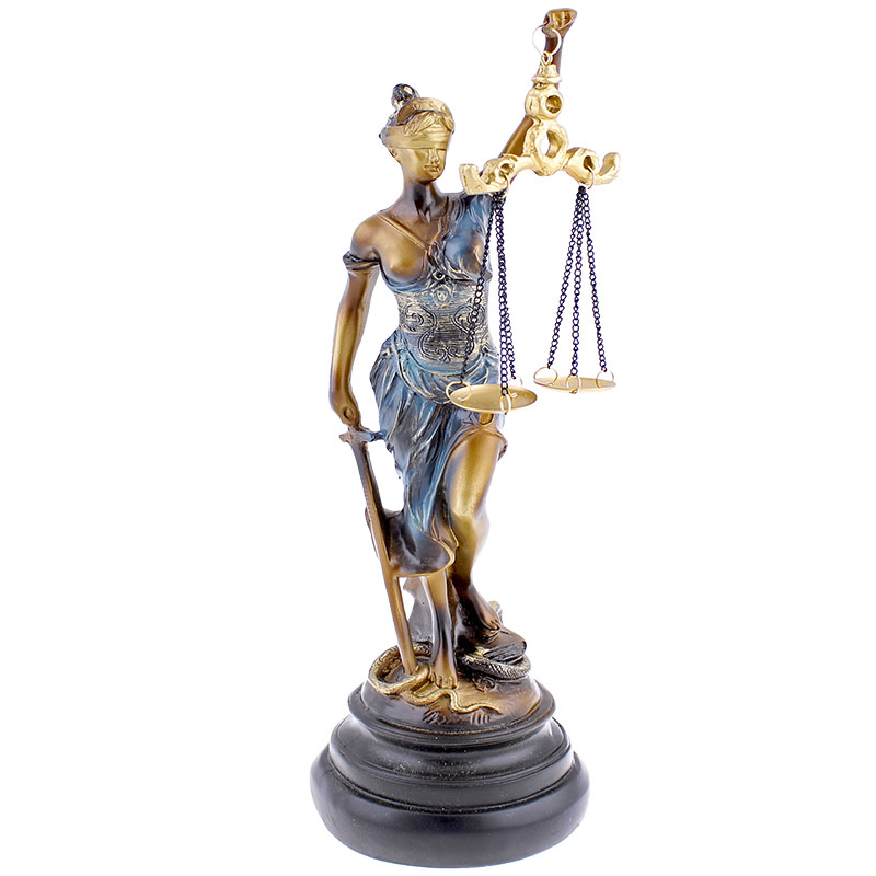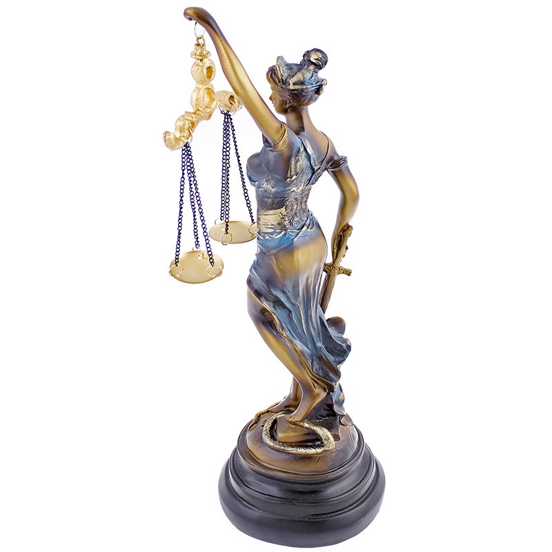 Soška spravodlivosti 33 cm je netradičná, no za to elegantná dekorácia do izby každého bytu či domu. Soška s výškou 33 cm bola vyhotovená z polyresinu, ktorý sa skladá z umelej živice a kameňa. Soška predstavuje starorímsku bohyňu justitiu, ktorá drží v jednej ruke váhy spravodlivosti a v druhej ruke meč. Soška je veľmi detailná so zaviazanými očami. Váha sošky je cca 0,5 kg. Jedná sa tak o originálnu dekoráciu do miestnosti vďaka detailom, prevedeniu ale hlavne myšlienke, ktorú presadzuje.