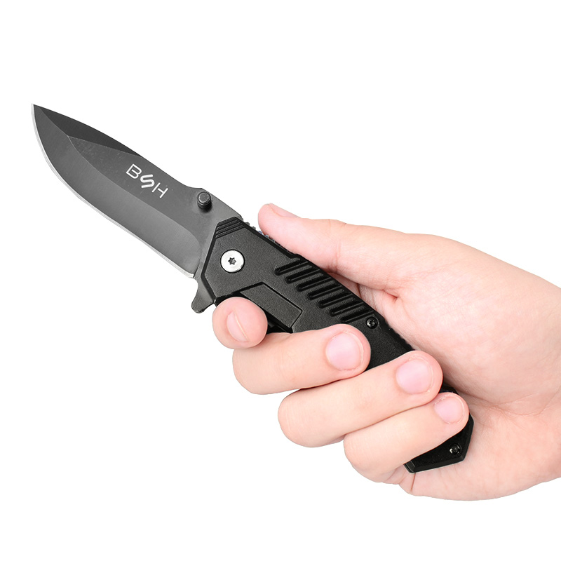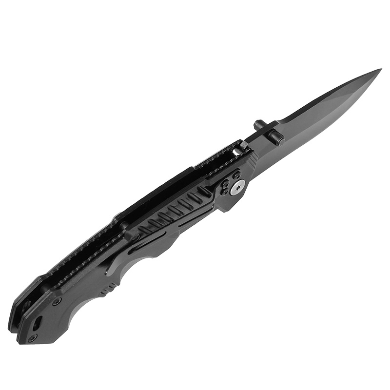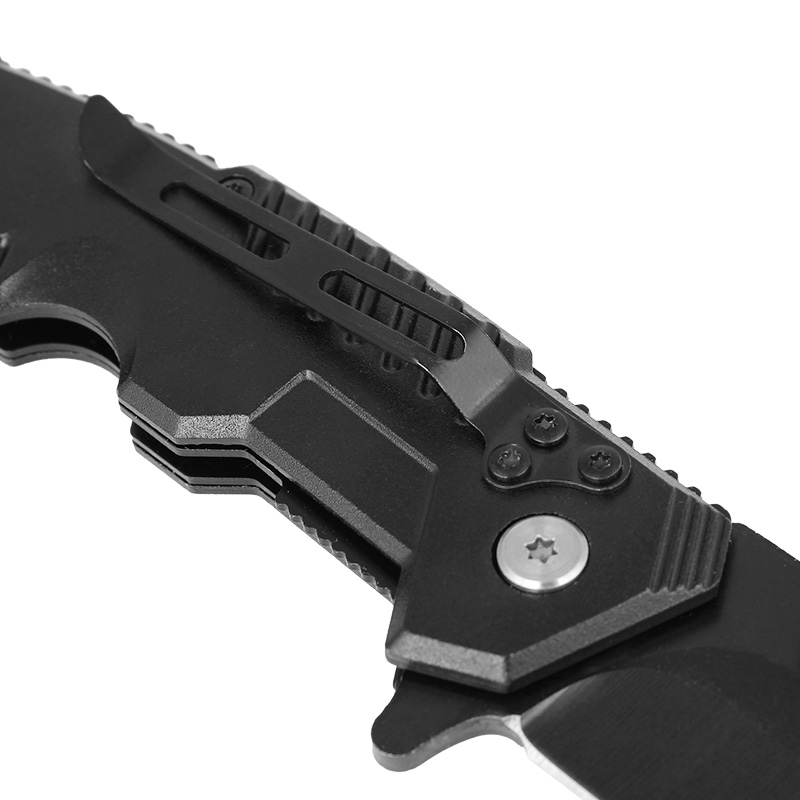 Kompaktný skladací nôž Drop Point DP198 je praktickým doplnkom, ideálnym na každodenné použitie. Jeho robustná konštrukcia a vrecková veľkosť z neho robia ideálneho spoločníka na každý deň. Čepeľ s prehnutým hrotom je potiahnutá čiernym antireflexným povlakom, ktorý účinne chráni pred koróziou a ďalej zvyšuje odolnosť čepele. Ľahká kovová rukoväť je ergonomicky tvarovaná s drážkami pre prsty pre bezpečný a pohodlný úchop. Dodatočné výstupky na hornej časti rukoväte poskytujú stabilnú oporu pre palec, čo zlepšuje kontrolu pri presnej práci. Nôž má praktickú sponu pre pohodlné nosenie na opasku alebo vo vrecku a otvor na konci rukoväte pre šnúrku na ruku.